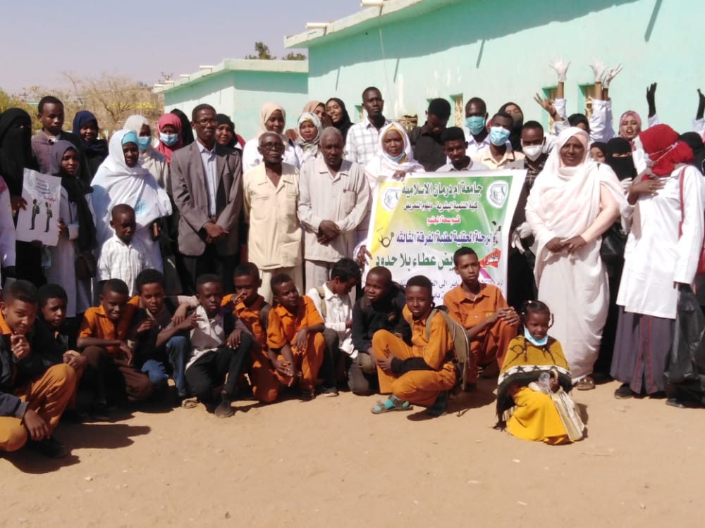 نظمت كلية التنمية البشرية بالتعاون مع إدارة الخدمات الأربعاء 26 يناير 2022م ضمن فعاليات الرحلة الحقلية لطلاب وطالبات الفرقة الثالثة تمريض تحت شعار :(التمريض عطاء بلا حدود) ورعاية الدكتور مزمل موسى حميدان عميد الكلية زيارة إلى مدرسة التدريب بنين حيث تم تقديم برامج توعيه وتثقيف للطلاب والقيام بحملة اصحاح البيئة داخل كليات وإدارات الجامعة المختلفة بالمدينة الجامعية بأبي سعد سعد .