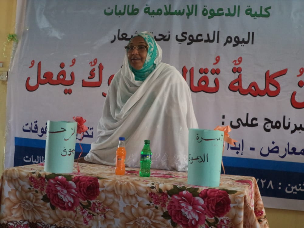 أقامت كلية الدعوة الإسلامية طالبات صباح اليوم الاثنين ٢٨ فبراير ٢٠٢٢م بمركز الطالبات بالثورة اليوم الدعوي تحت شعار ( الدينُ كلمةٌ تُقالُ وسلوكٌ يُفعلُ) حيث احتوي البرنامج على : كلمات - مسابقات- معارض - تكريم - وإبداعات طلابية برعاية د٠ أحلام عبدالرحيم نائبة عميد كلية الدعوة الإسلامية وإشراف د٠ زينب السر وتشريف عميد الكلية د٠ محمد آدم. شرّف الاحتفال د٠ سامية محمد عبد الرحمن مديرة مركز الطالبات وعدد من الأساتذة والأستاذات بالكلية كما شرّف الحفل ب...